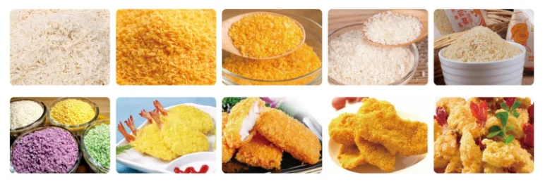 Možemo proizvesti razne krušne mrvice,različiti materijali,različite boje,veličina zrna i debljina prezle mogu se proizvesti prema vašim zahtjevima,ove slike su samo za referencu,za detalje kontaktirajte naše prodajno osoblje.