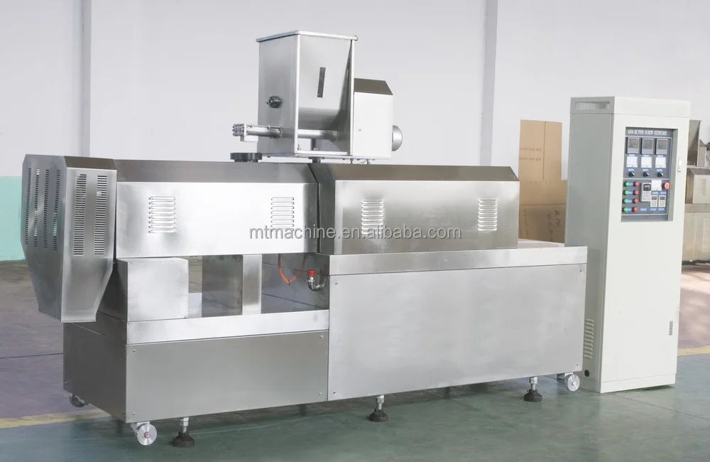 Mašina za pravljenje pločica od žitarica za prehrambene užine velikog kapaciteta sa dvostrukim pužanjemje poboljšana i razvijena od strane naše kompanije na bazi napredne tehnologije. Ova proizvodna linija se može završiti automatski od miješanja, ekstruzije, oblikovanja, rezanja, sušenja do začinjavanja u isto vrijeme. Uz jednostavan rad i praktičnu proizvodnju, naši kupci ga pozdravljaju.