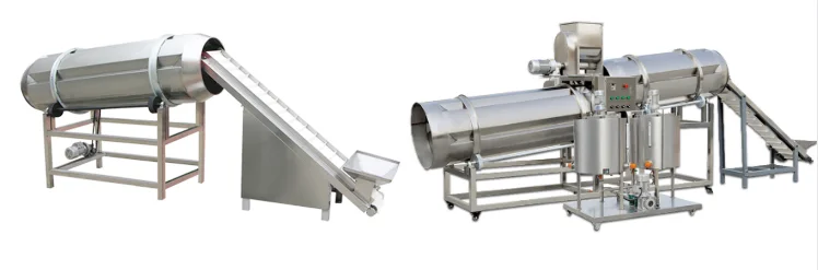 Za mnoge vrste grickalica potrebno je začinjanje različitog ukusa, ovaj sistem može sa šećerom i uljem i prahom za začin.Možemo ponuditi dvije vrste mašina za začinjavanje bubnja, s jednim bubnjem i dvostrukim bubnjem. Kupci mogu prilagoditi veličinu bubnja prema vlastitim potrebama. Veličina bubnja se određuje prema učinku proizvoda. Izlaz je drugačiji, veličina je drugačija, a cijena je drugačija.imamo poluautomatske i automatske različite vrste, samo prema proizvodima i budžetu za odabir različite vrste.